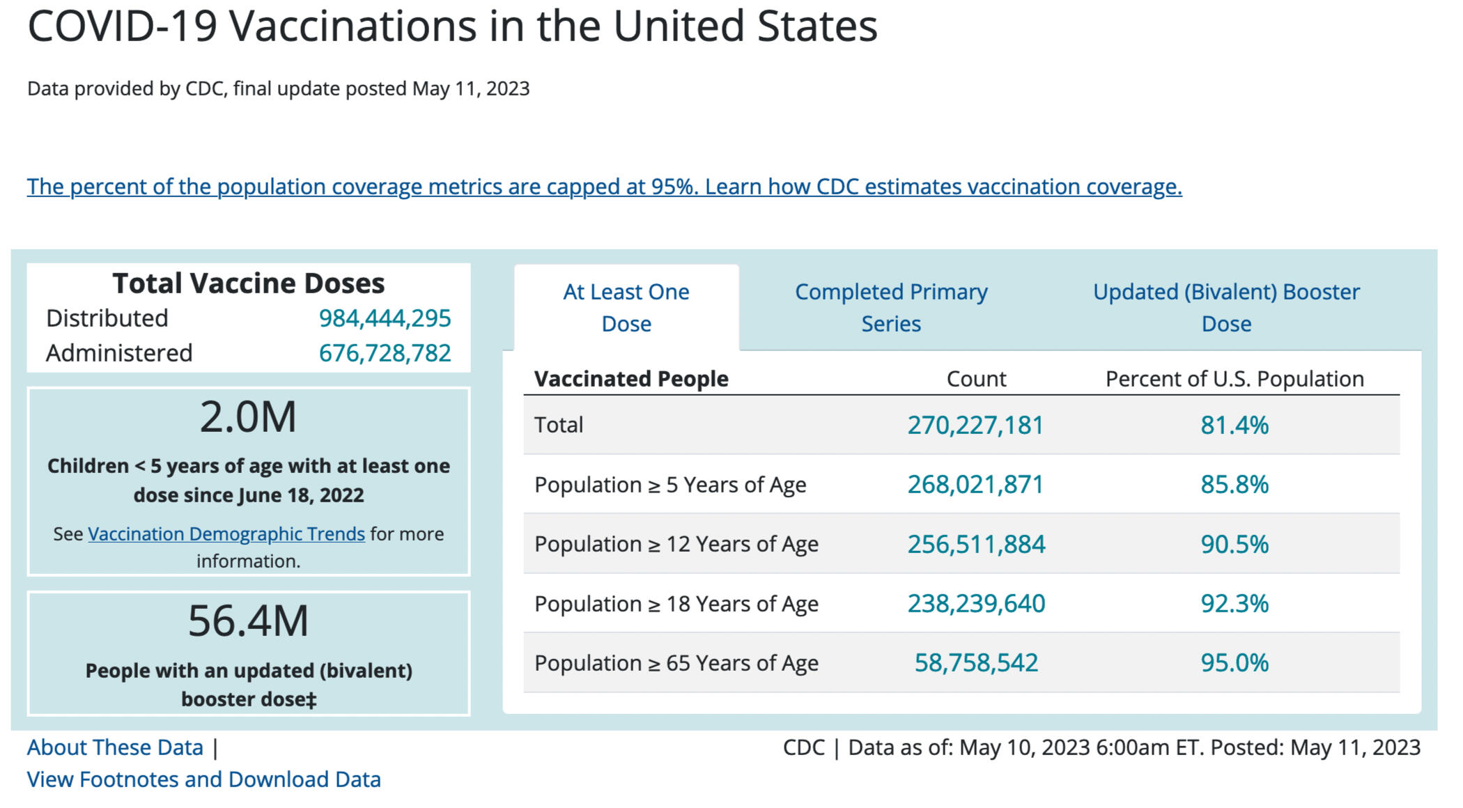 In the USA, as of Dec. 7/22 over 267 million people have been jabbed at least once. The prospects look very grim. On May 11, 2023, the CDC posted its final update showing that over 270 million Americans had been jabbed.