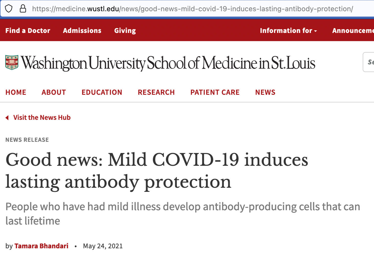 Over 150 independent studies affirm Naturally Acquired Immunity to Covid-19. Even the NIH agrees. More confirmation, as does this study by the Washington University School of Medicine.
